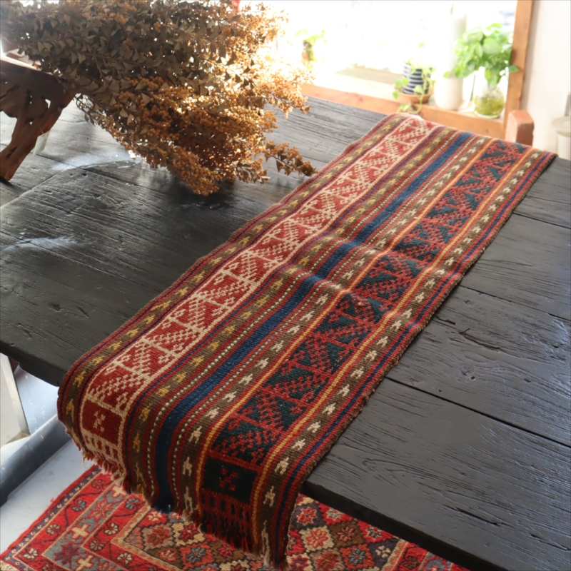オールドキリム ガジャリ ジャジム93×29cm イランの古いテント布 刺繍のような織り