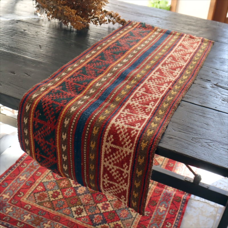 オールドキリム ガジャリ ジャジム69×29cm イランの古いテント布 刺繍のような織り