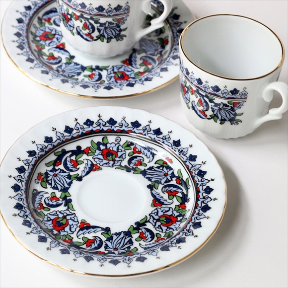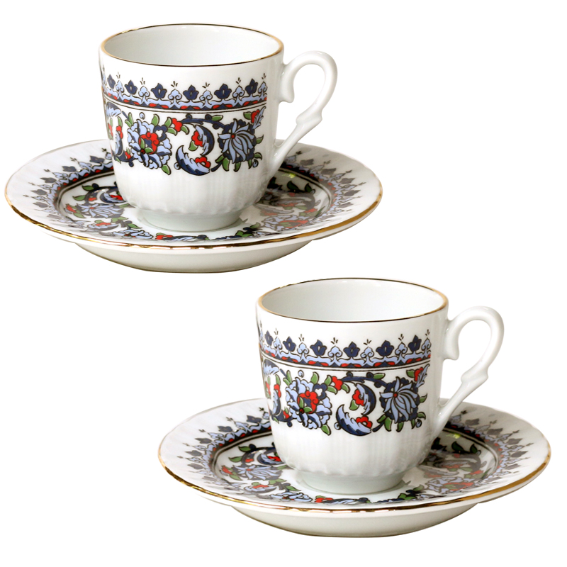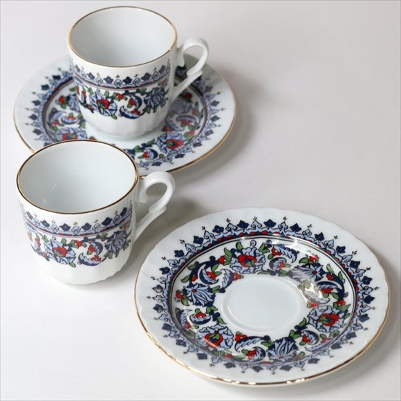 トルココーヒー用エスプレッソ・デミタスコーヒーカップ&ソーサー珍しい小さめ陶器2客セット クラシック
