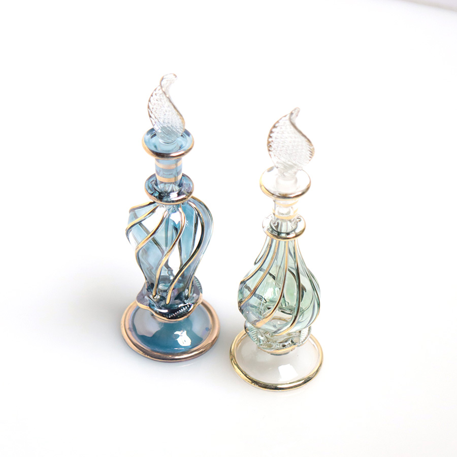 エジプト ガラス香水瓶 11cm 2本セット ゴールドライン ファラオ Egyptian Glass Bottle