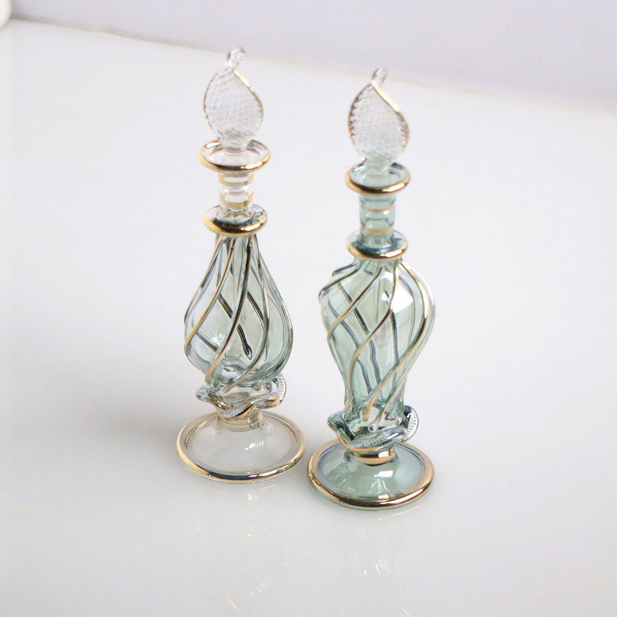 エジプト ガラス香水瓶 11cm 2本セット ゴールドライン ファラオ Egyptian Glass Bottle