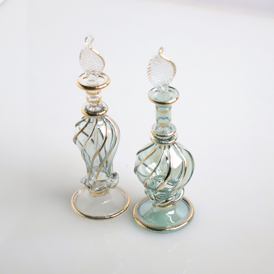 エジプト ガラス香水瓶 11cm 2本セット ゴールドライン ファラオ Egyptian Glass Bottle