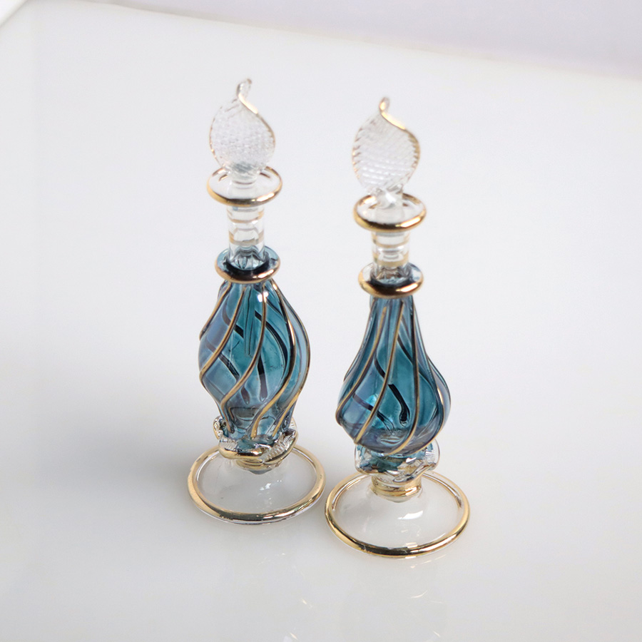 エジプト ガラス香水瓶 11cm 2本セット ゴールドライン ファラオ Egyptian Glass Bottle