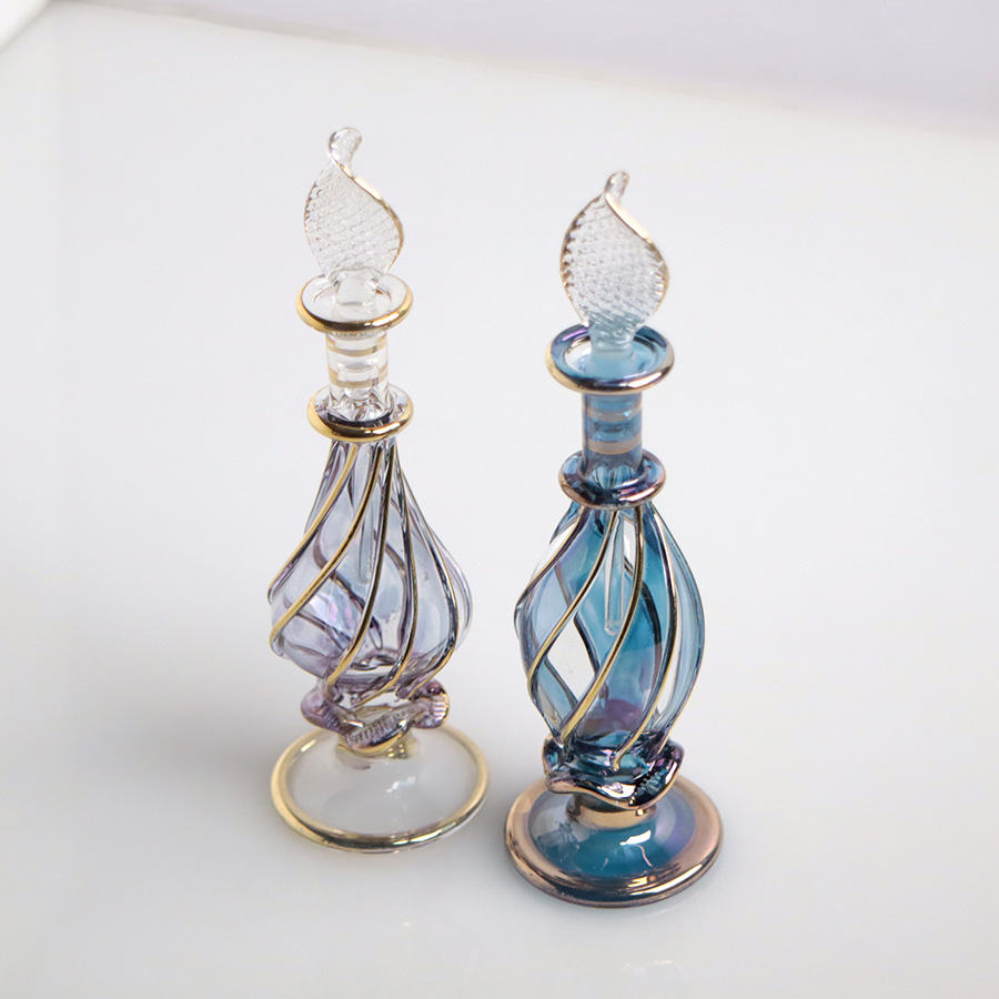 エジプト ガラス香水瓶 11cm 2本セット ゴールドライン ファラオ Egyptian Glass Bottle