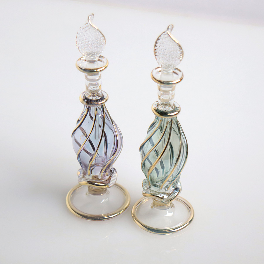 エジプト ガラス香水瓶 11cm 2本セット ゴールドライン ファラオ Egyptian Glass Bottle