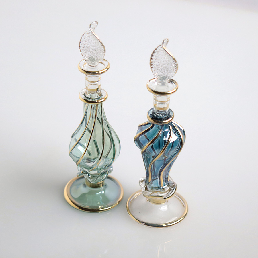 エジプト ガラス香水瓶 11cm 2本セット ゴールドライン ファラオ Egyptian Glass Bottle