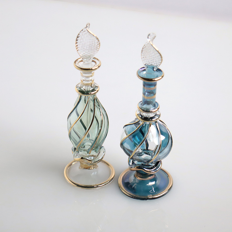 エジプト ガラス香水瓶 11cm 2本セット ゴールドライン ファラオ Egyptian Glass Bottle