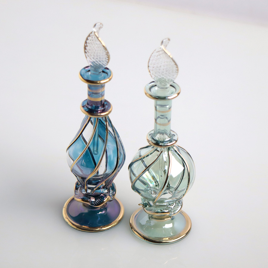 エジプト ガラス香水瓶 11cm 2本セット ゴールドライン ファラオ Egyptian Glass Bottle