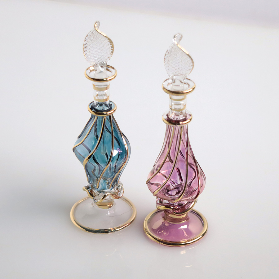 エジプト ガラス香水瓶 11cm 2本セット ゴールドライン ファラオ Egyptian Glass Bottle