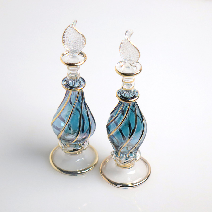 エジプト ガラス香水瓶 11cm 2本セット ゴールドライン ファラオ Egyptian Glass Bottle
