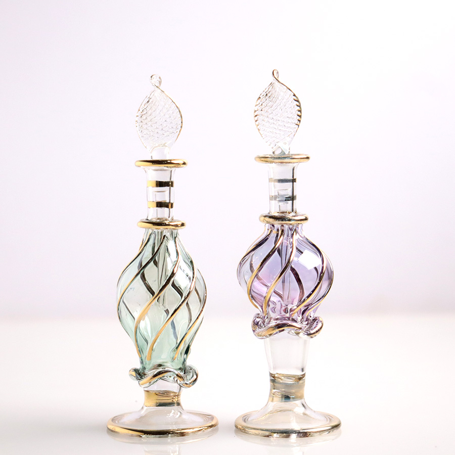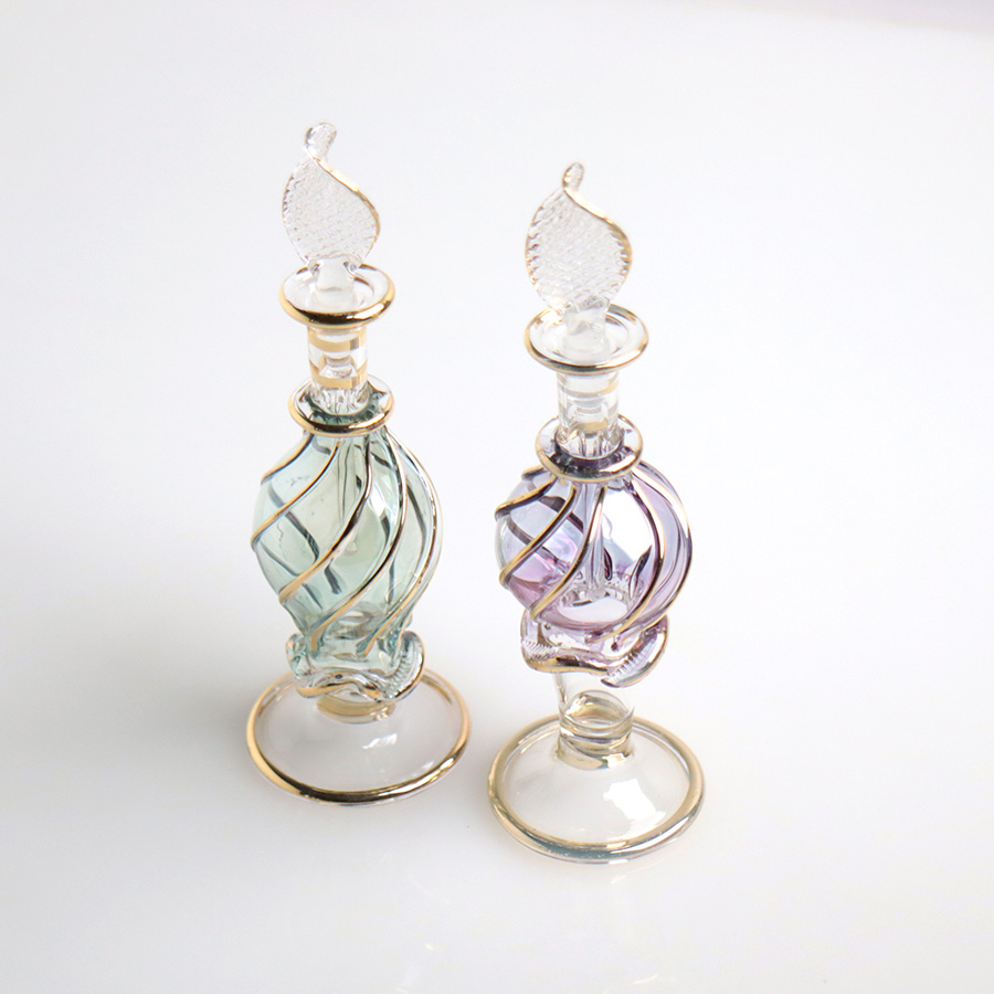 エジプト ガラス香水瓶 11cm 2本セット ゴールドライン ファラオ Egyptian Glass Bottle