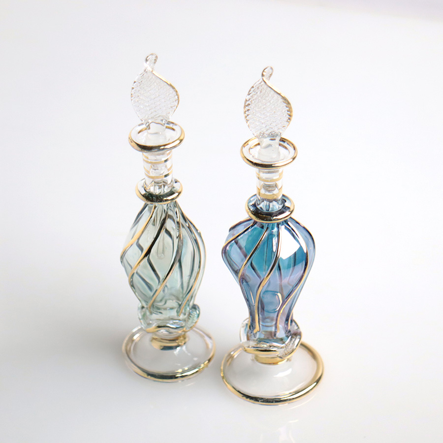エジプト ガラス香水瓶 11cm 2本セット ゴールドライン ファラオ Egyptian Glass Bottle