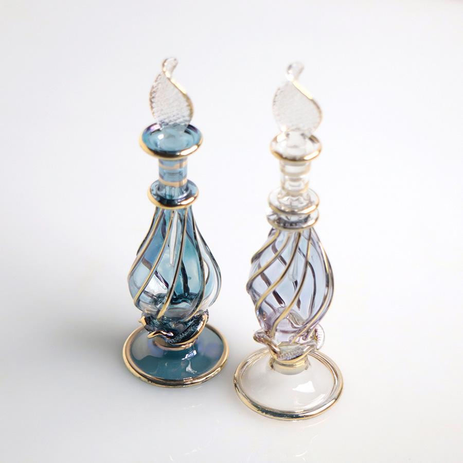 エジプト ガラス香水瓶 11cm 2本セット ゴールドライン ファラオ Egyptian Glass Bottle