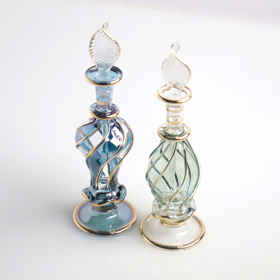 エジプト ガラス香水瓶 11cm 2本セット ゴールドライン ファラオ Egyptian Glass Bottle