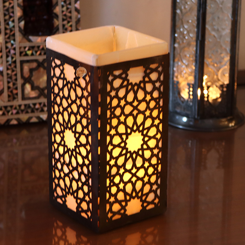 エジプト産のアラバスターという白い鉱石を使用したキャンドルホルダー。アラベスク模様のアイアンにアラバスターが収まるように作られています。キャンドルを灯し、ぼんやりとした幻想的な灯りをお楽しみ下さい。