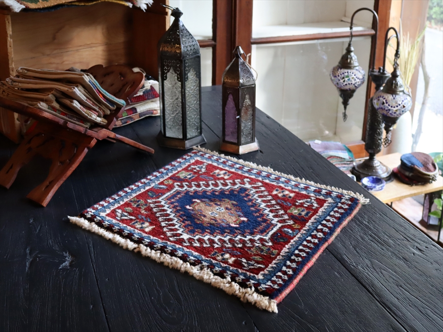 ヤラメ 手織りラグ ミニサイズ /トライバルラグ39×42cm