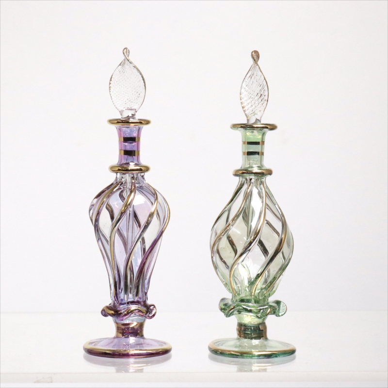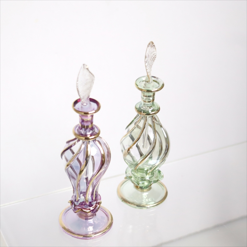 エジプト ガラス香水瓶 11cm 2本セット ゴールドライン ファラオ Egyptian Glass Bottle