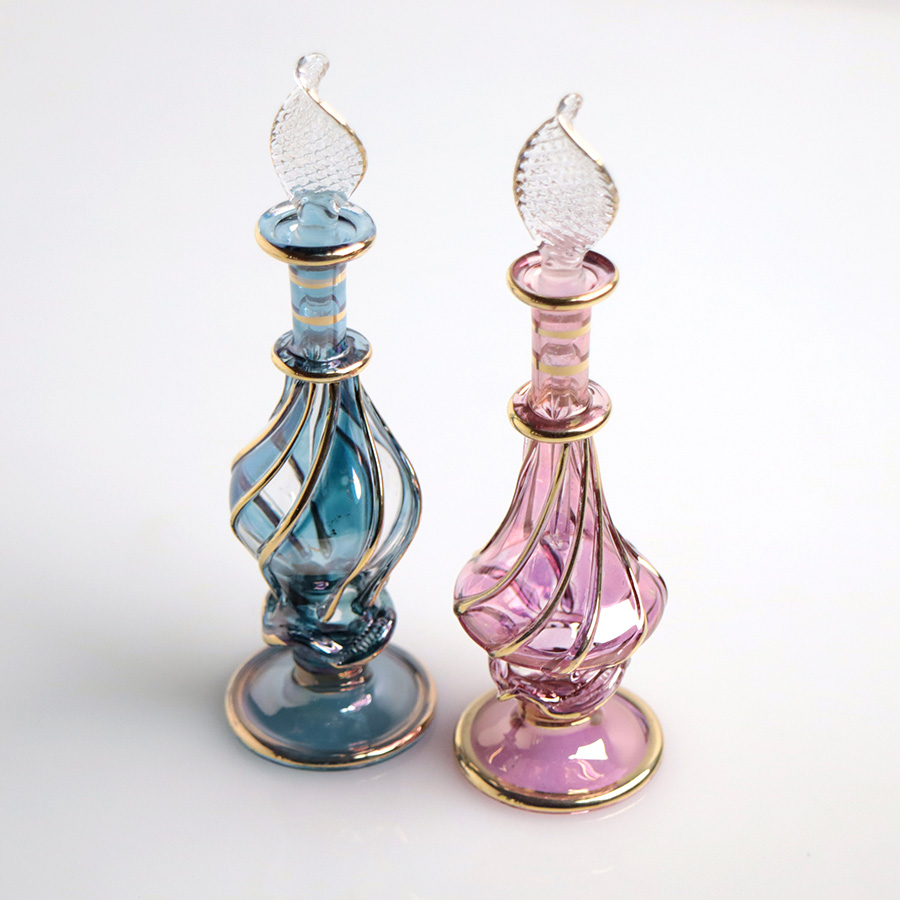 エジプト ガラス香水瓶 11cm 2本セット ゴールドライン ファラオ Egyptian Glass Bottle