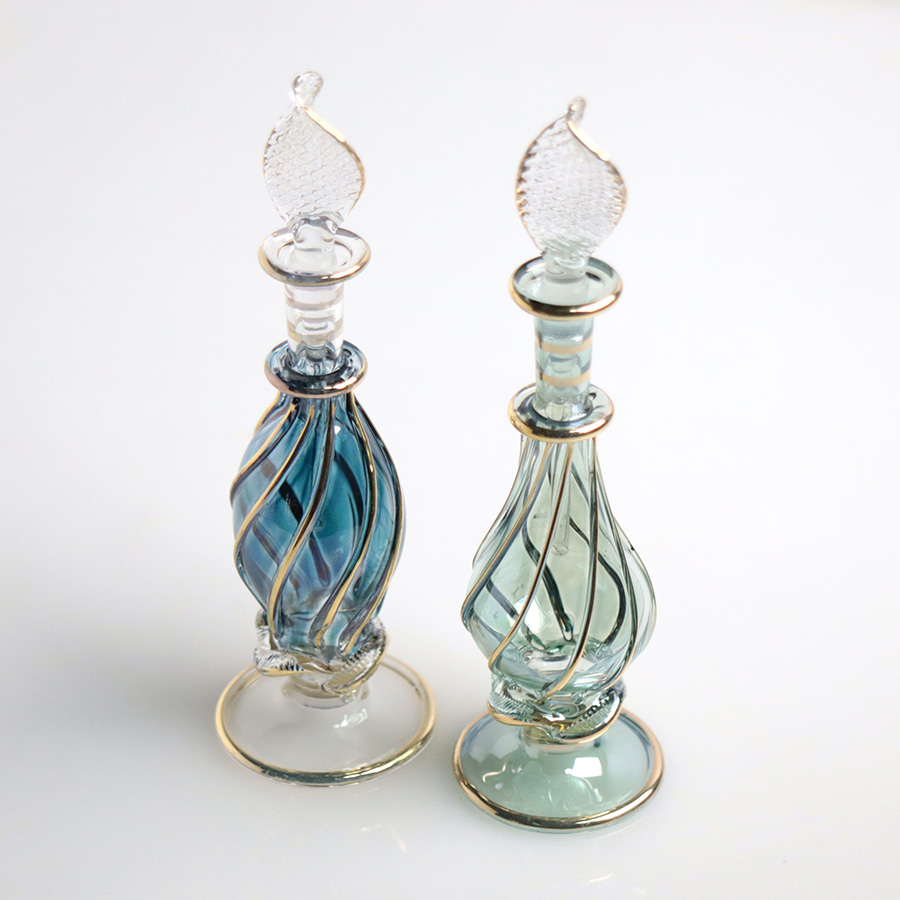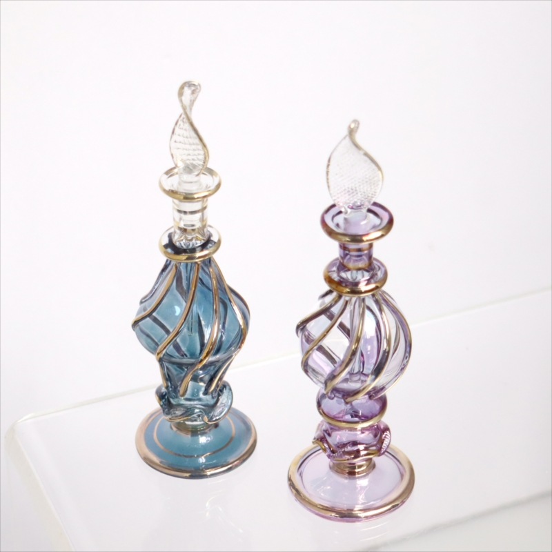 エジプト ガラス香水瓶 11cm 2本セット ゴールドライン ファラオ Egyptian Glass Bottle