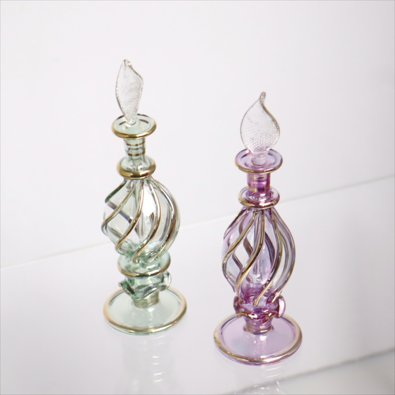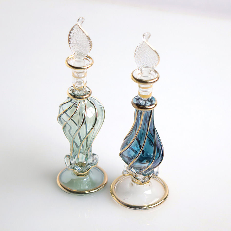 エジプト ガラス香水瓶 11cm 2本セット ゴールドライン ファラオ Egyptian Glass Bottle