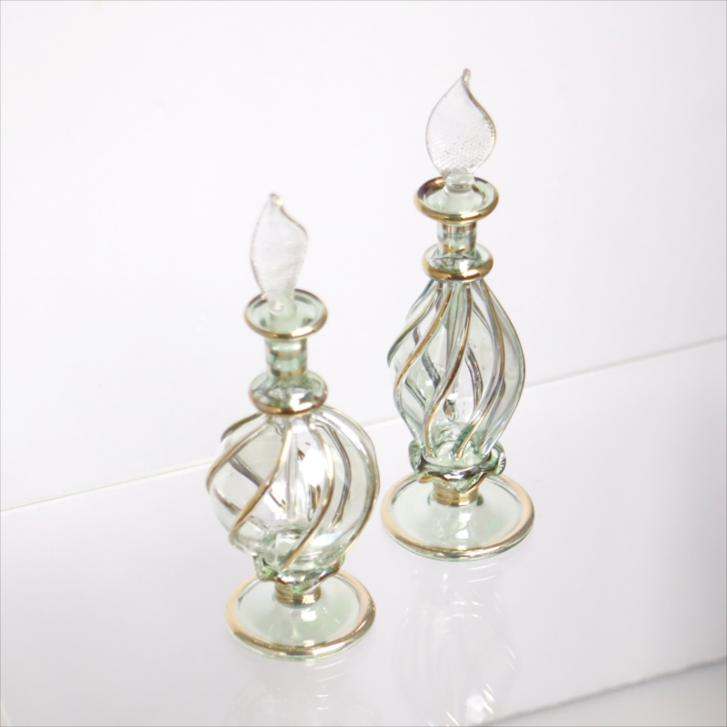 エジプト ガラス香水瓶 11cm 2本セット ゴールドライン ファラオ Egyptian Glass Bottle