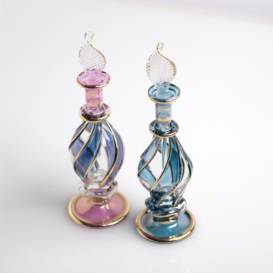 エジプト ガラス香水瓶 11cm 2本セット ゴールドライン ファラオ Egyptian Glass Bottle