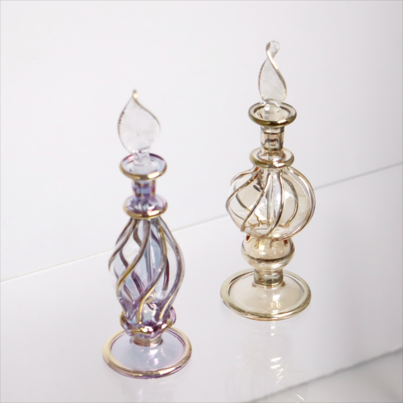 エジプト ガラス香水瓶 11cm 2本セット ゴールドライン ファラオ Egyptian Glass Bottle