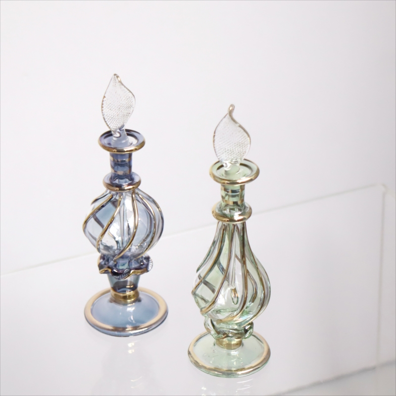 エジプト ガラス香水瓶 11cm 2本セット ゴールドライン ファラオ Egyptian Glass Bottle
