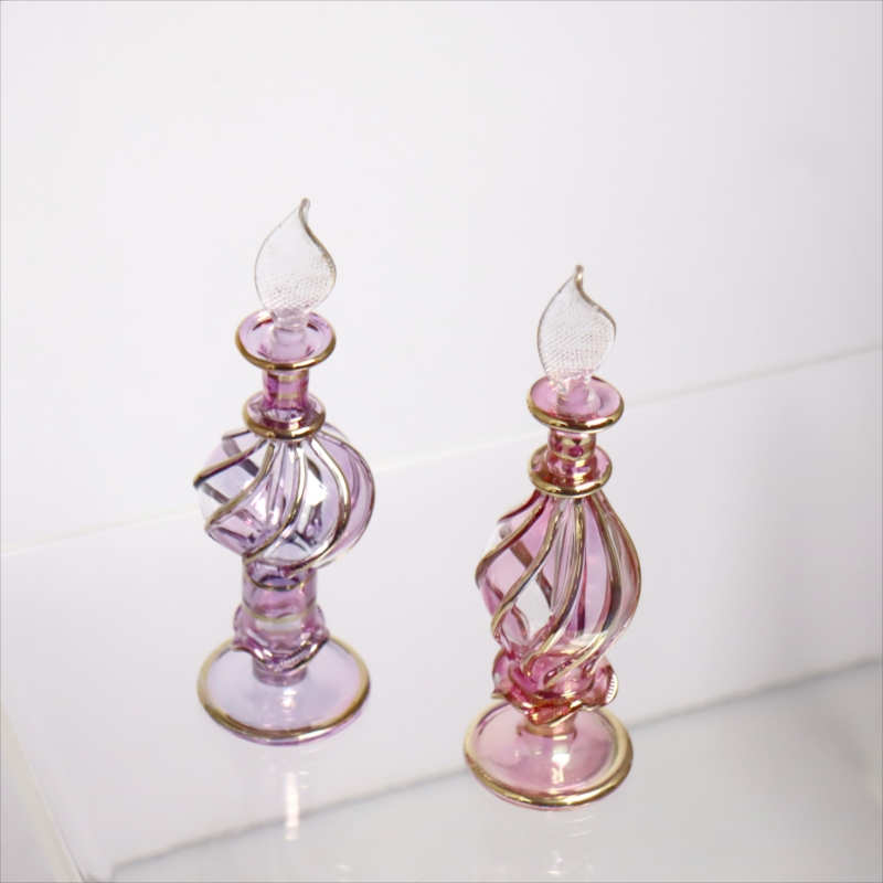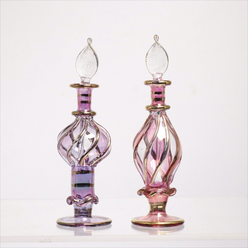 エジプト ガラス香水瓶 11cm 2本セット ゴールドライン ファラオ Egyptian Glass Bottle