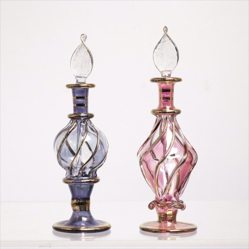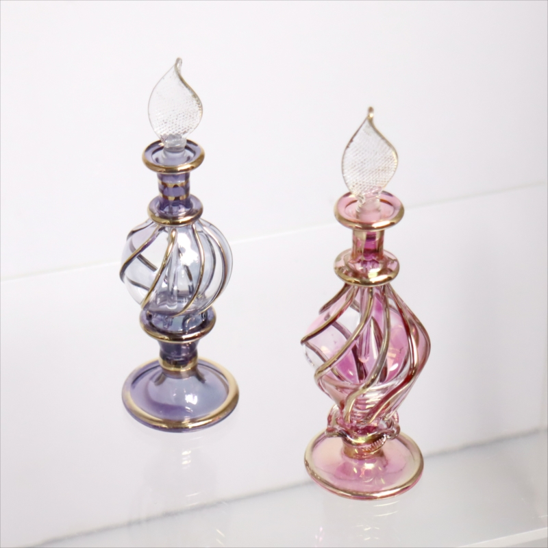 エジプト ガラス香水瓶 11cm 2本セット ゴールドライン ファラオ Egyptian Glass Bottle