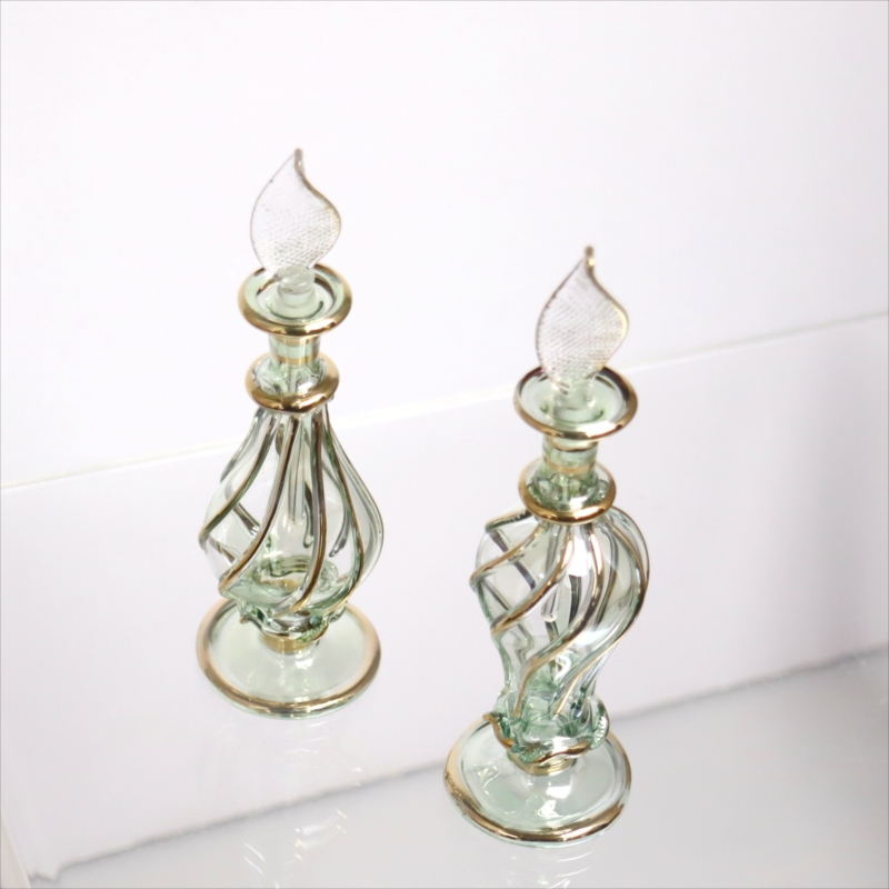 エジプト ガラス香水瓶 11cm 2本セット ゴールドライン ファラオ Egyptian Glass Bottle