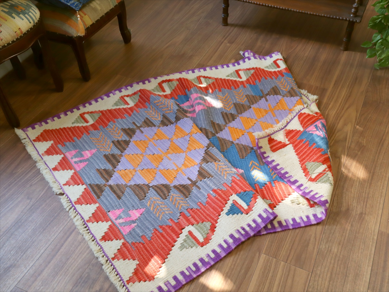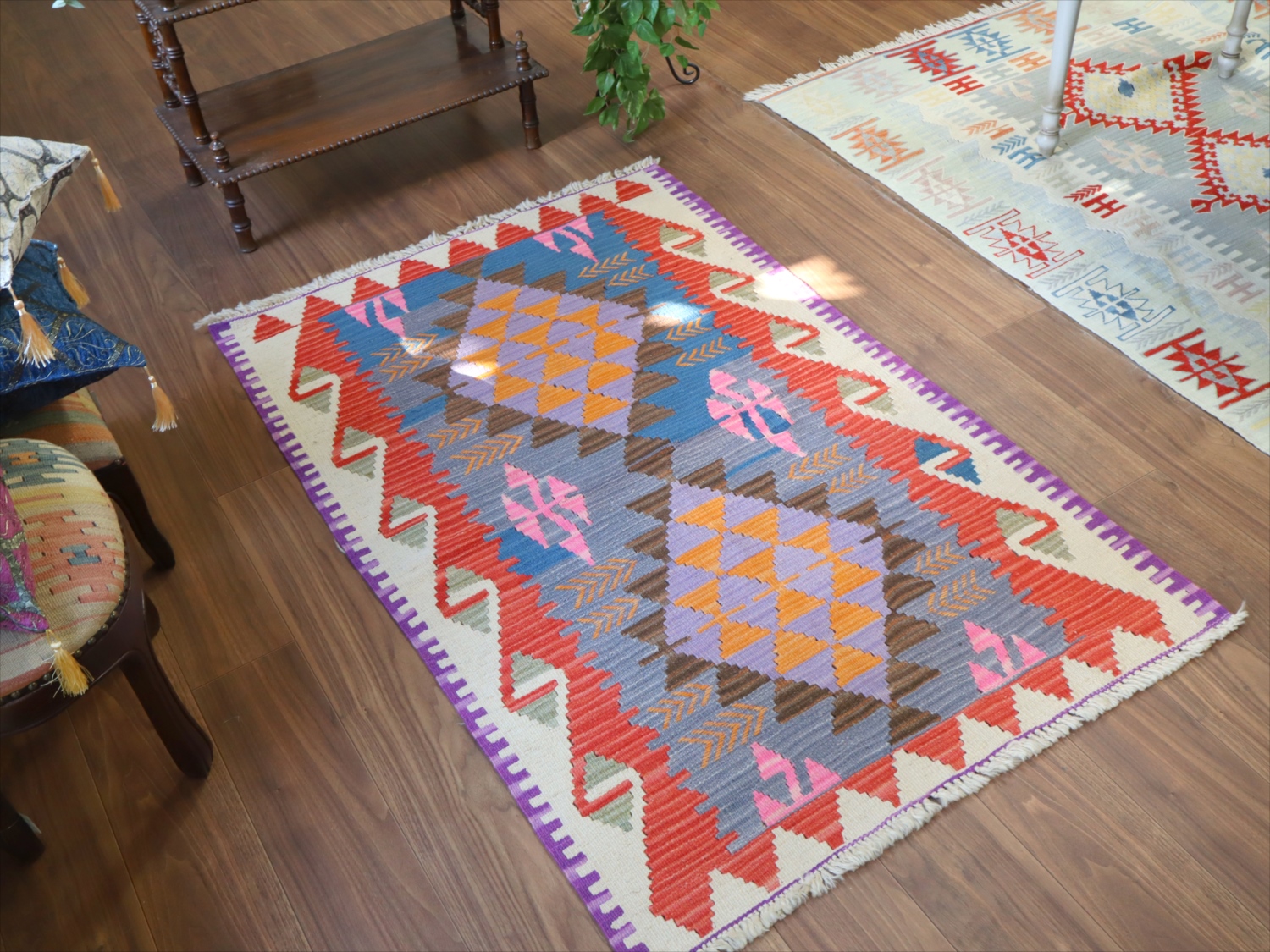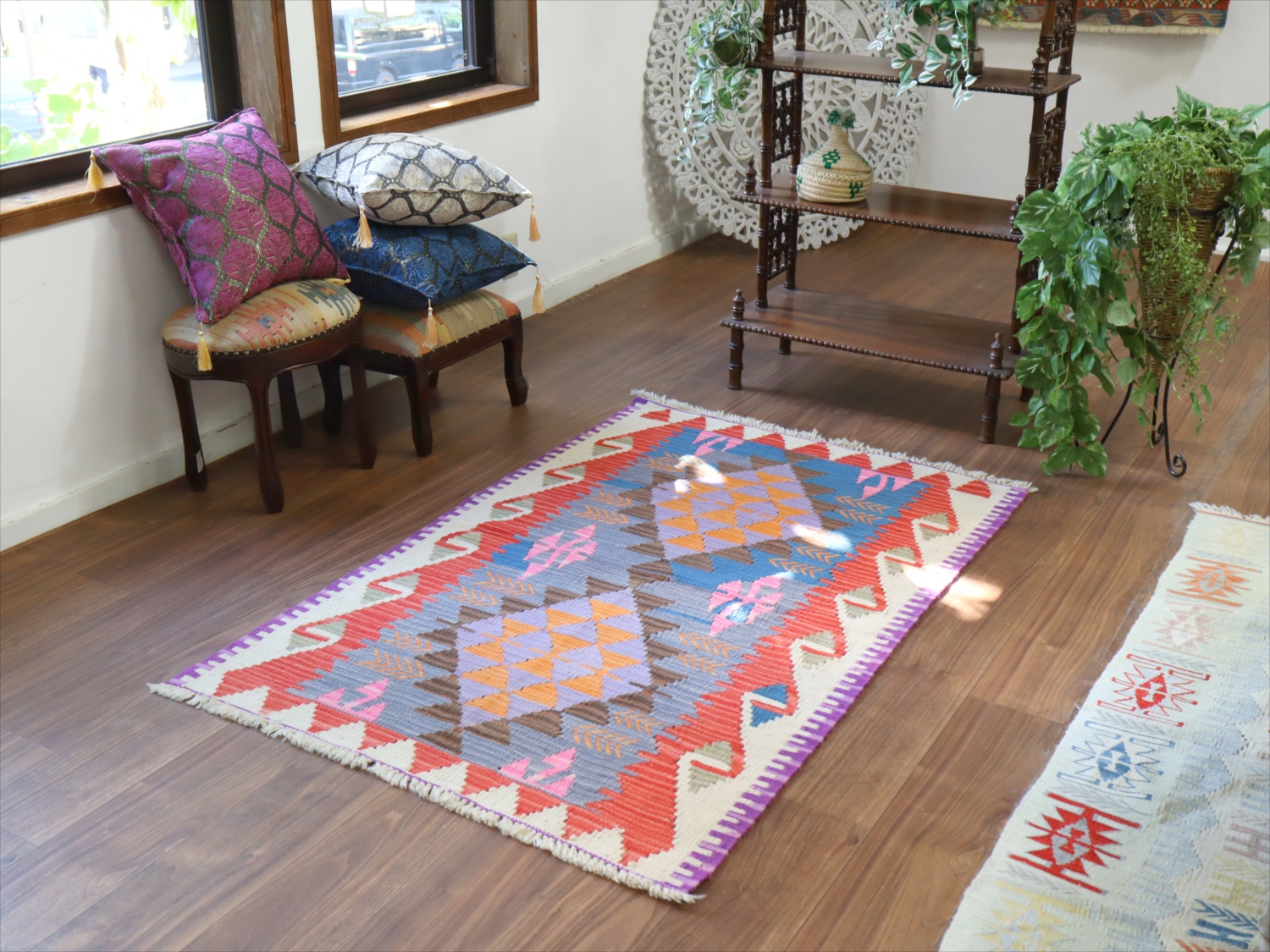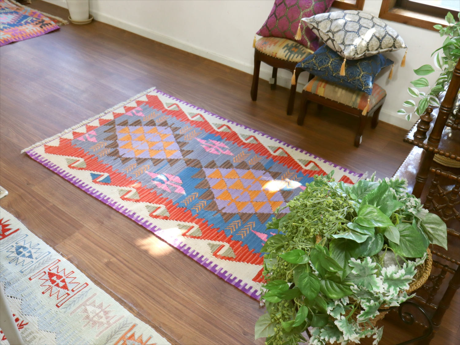 似ているデザインのキリムがあっても、細かなところは色やサイズ、形などがそれぞれ異なっていて、どれも世界で一枚だけの手織りキリムです。