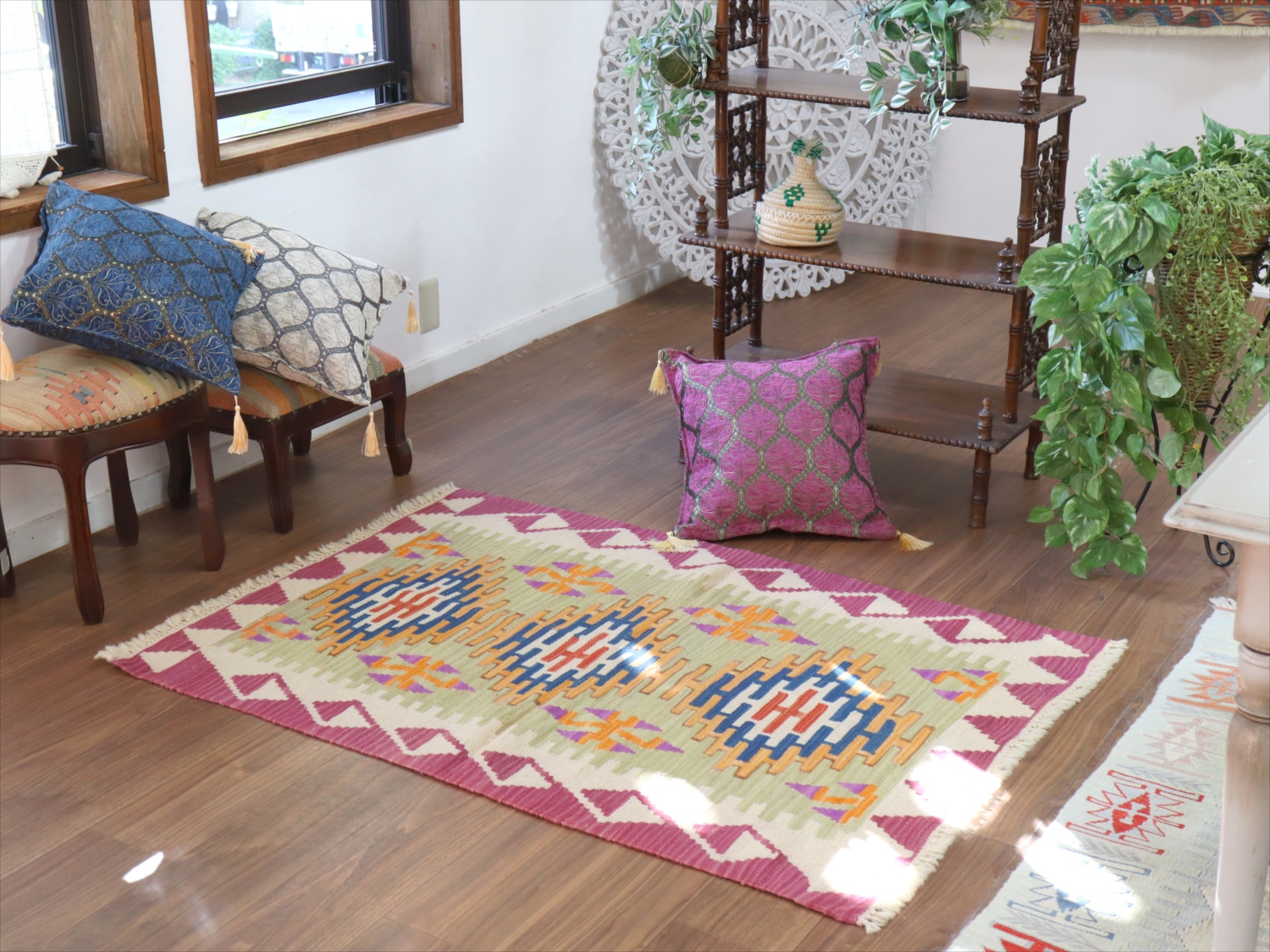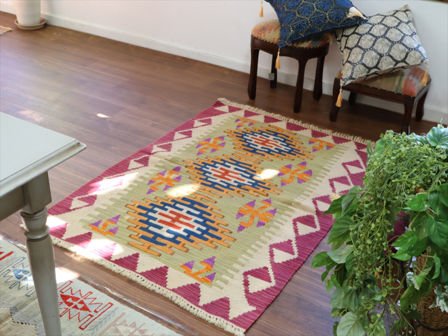 似ているデザインのキリムがあっても、細かなところは色やサイズ、形などがそれぞれ異なっていて、どれも世界で一枚だけの手織りキリムです。