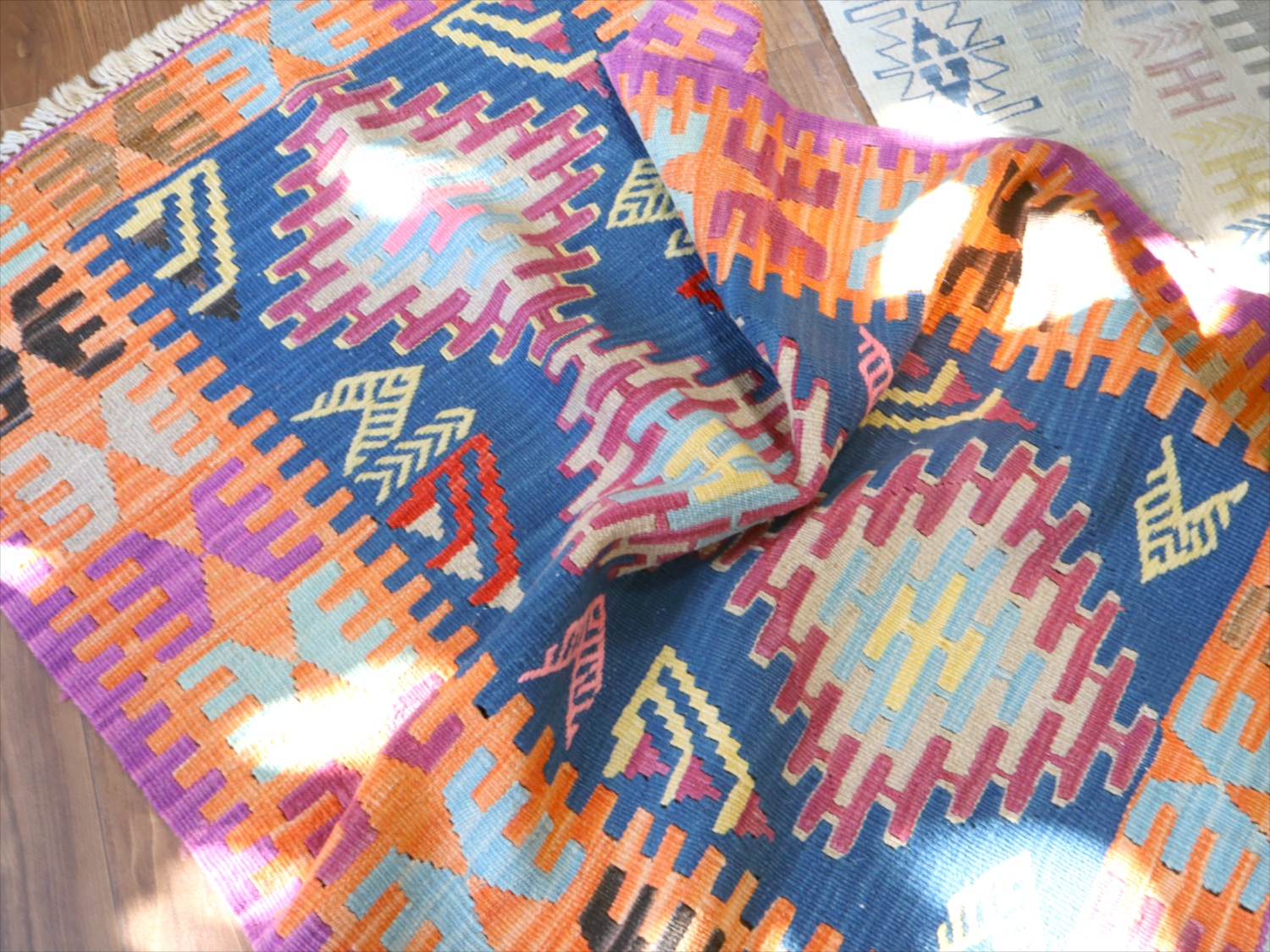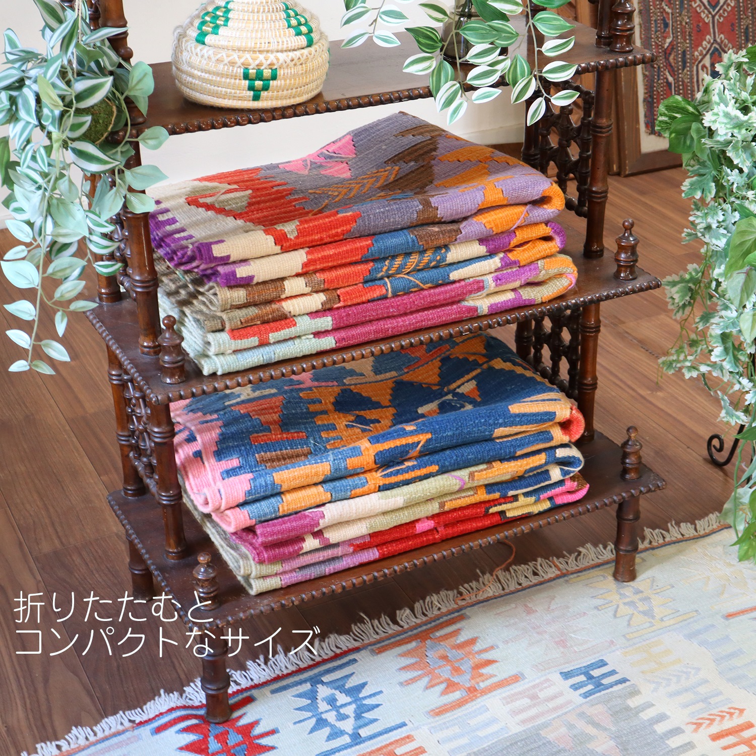似ているデザインのキリムがあっても、細かなところは色やサイズ、形などがそれぞれ異なっていて、どれも世界で一枚だけの手織りキリムです。