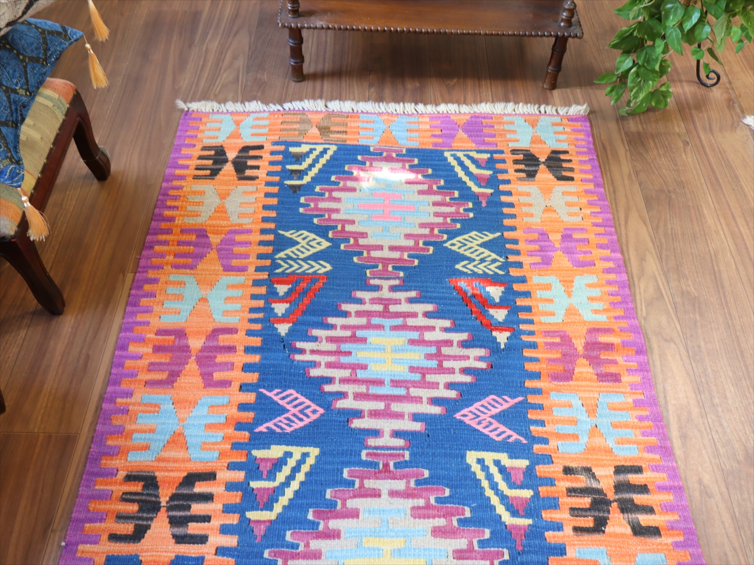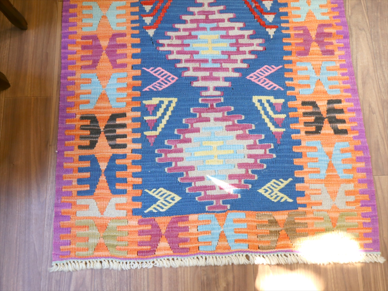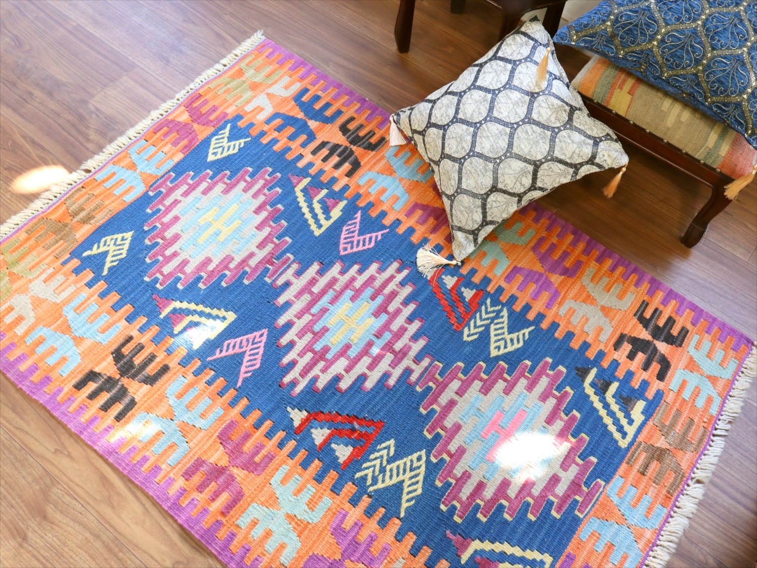 21世紀に入ってからも伝統的なキリム織りの技法を受け継ぎ、織り継がれているカイセリ地方のキリムです。明るい色使いと、大胆な幾何学柄のデザインで、トルコキリムといえばこんな感じ!とイメージされる方も多いのでは?