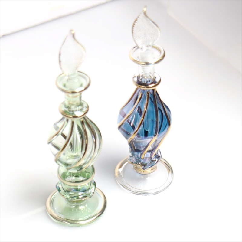 エジプト ガラス香水瓶 11cm 2本セット ゴールドライン ファラオ Egyptian Glass Bottle