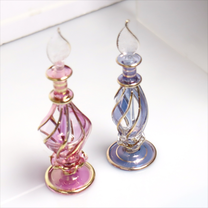 エジプト ガラス香水瓶 11cm 2本セット ゴールドライン ファラオ Egyptian Glass Bottle