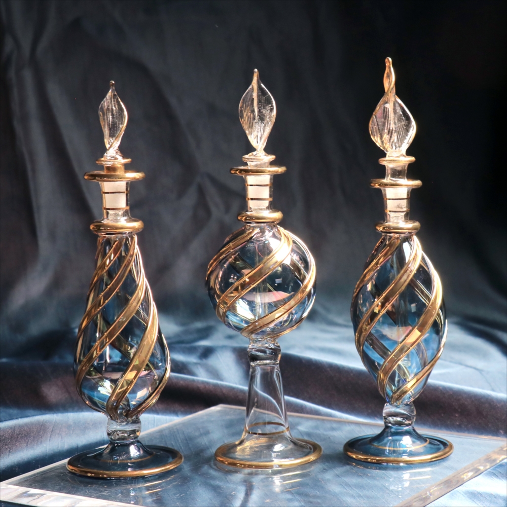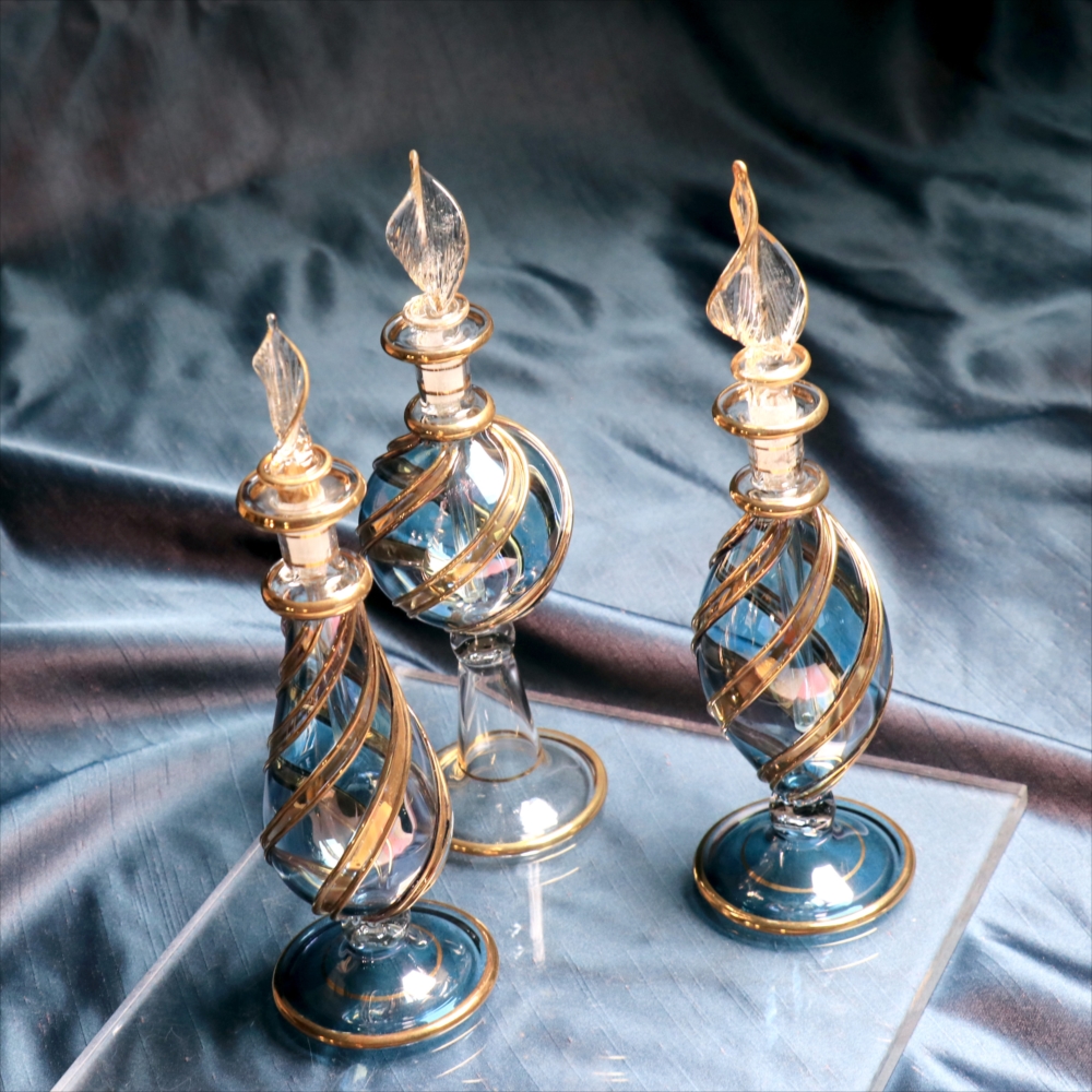 エジプトガラス香水瓶 3本セット ファラオ ゴールドライン/ブルー