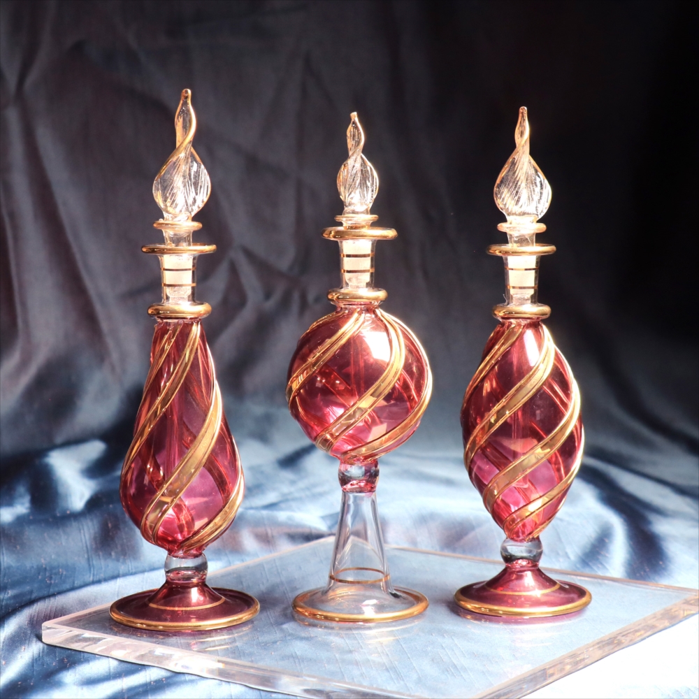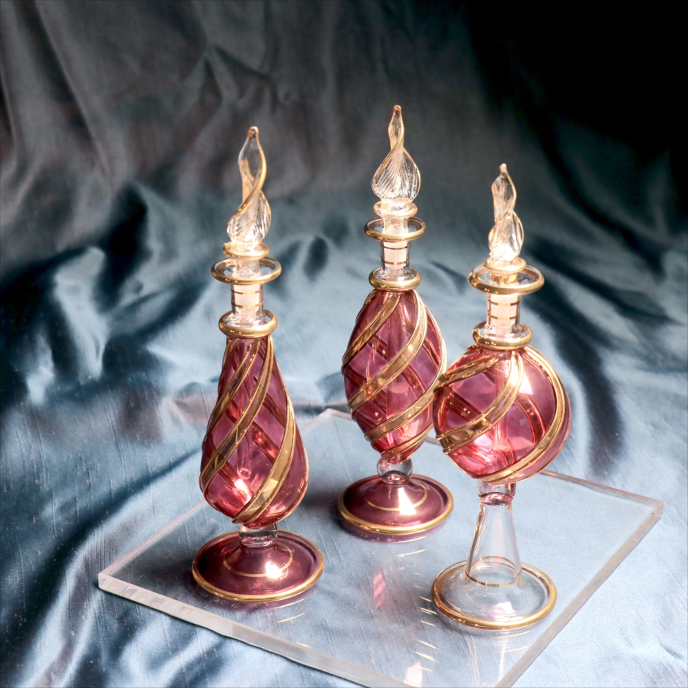 エジプトガラス香水瓶 3本セット ファラオ ゴールドライン/パープル