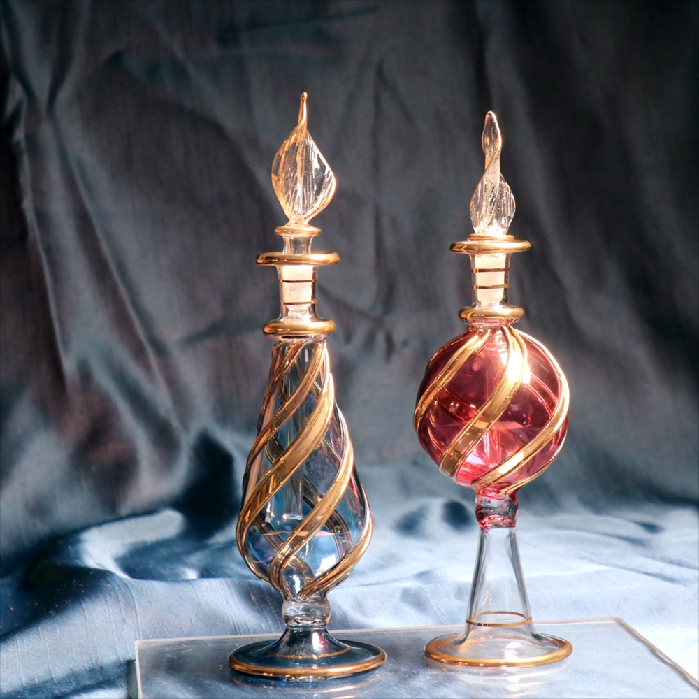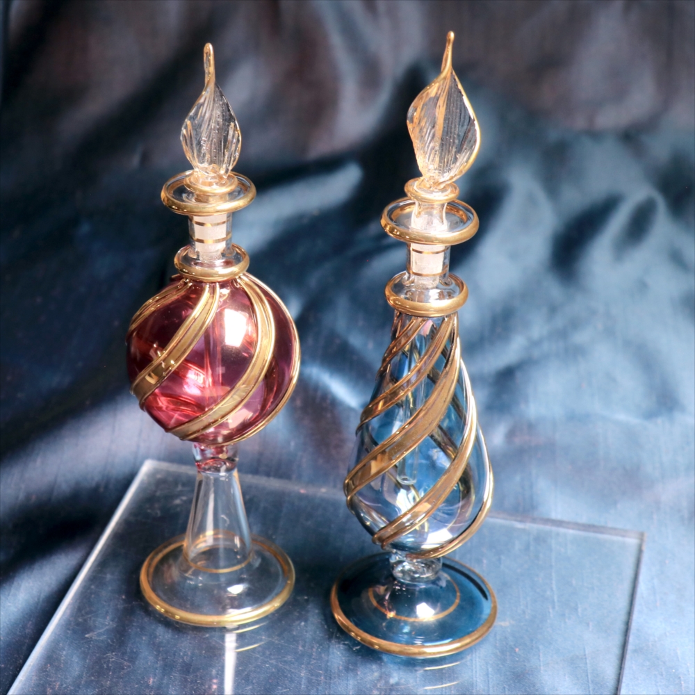 エジプトガラス香水瓶 2本セット ファラオ ブルー/パープル