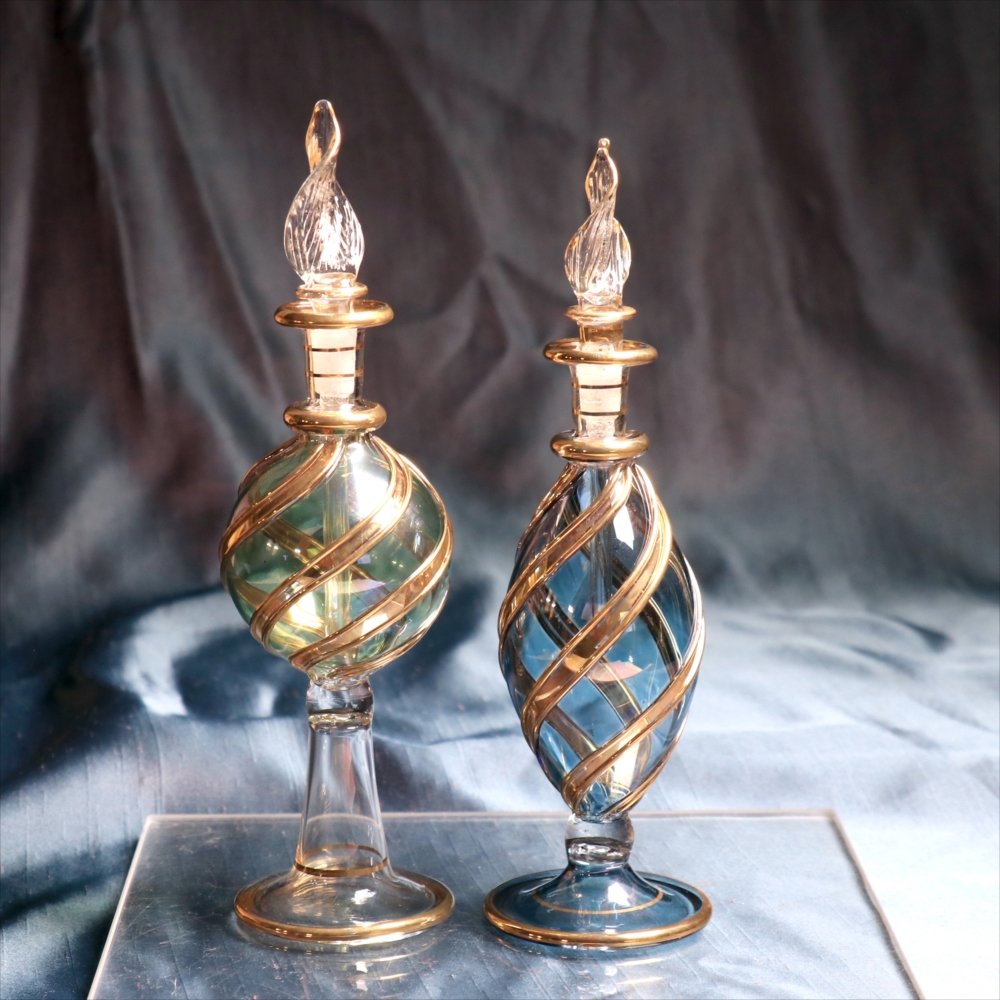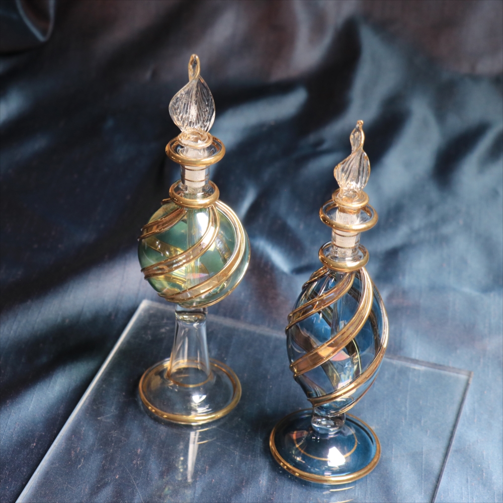 エジプトガラス香水瓶 2本セット ファラオ グリーン/ブルー