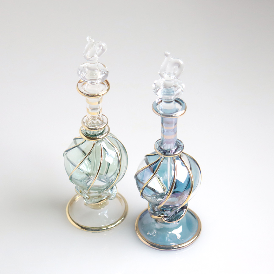 実際に香水瓶として使うこともできますが、やや密閉性が低いので、置物・飾り・一輪挿しなどとしてお楽しみください。