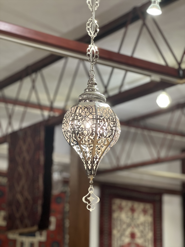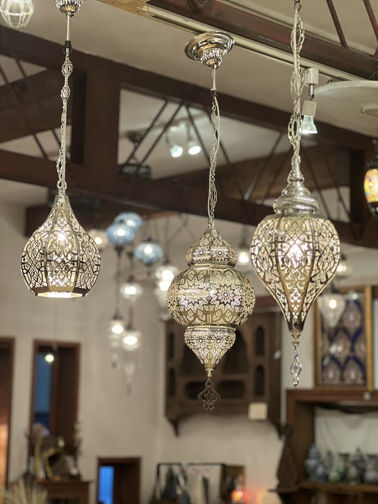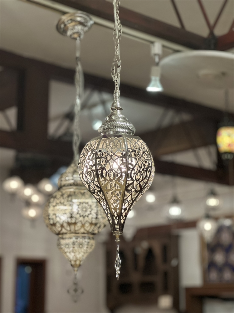 メタルシェード ランタン シルバーレーザーカットの透かし文様 8面