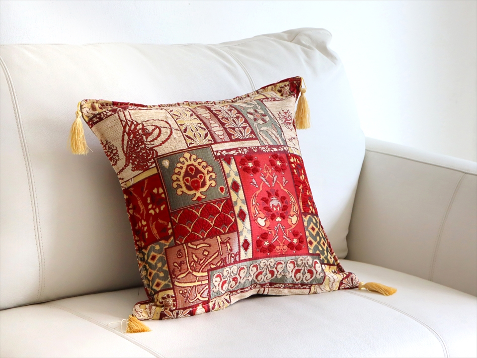 クッションカバー 45x45cm トルコデザイン シュニール素材のクッションカバー カリグラフィ・アイボリー