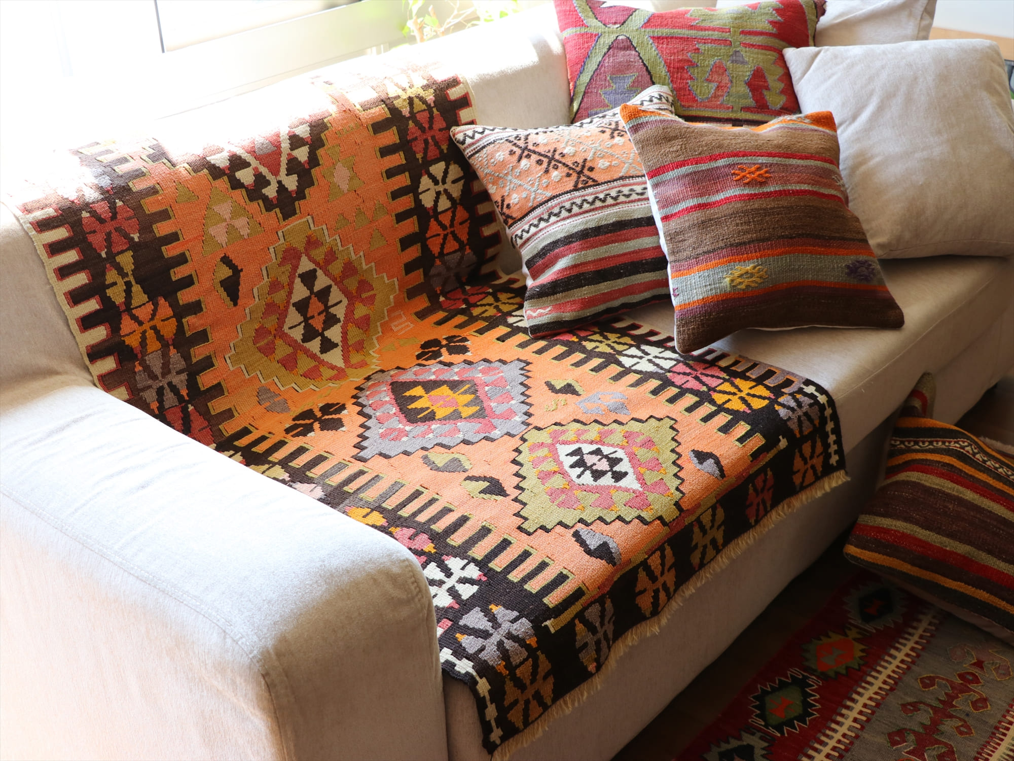 全体のカタチが少しゆがんでいるほか、中心線も少しずれています。織り自体にはダメージはなく、やわらかくしなやかな織り地。