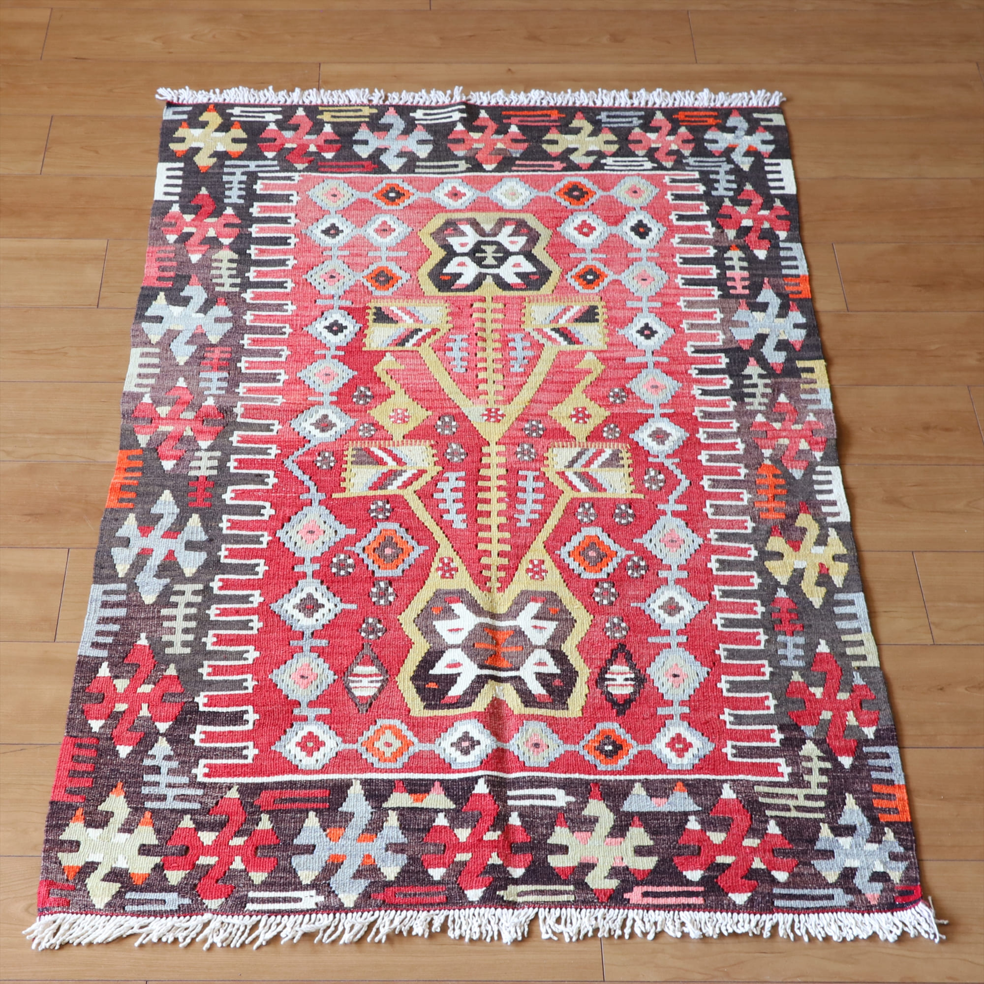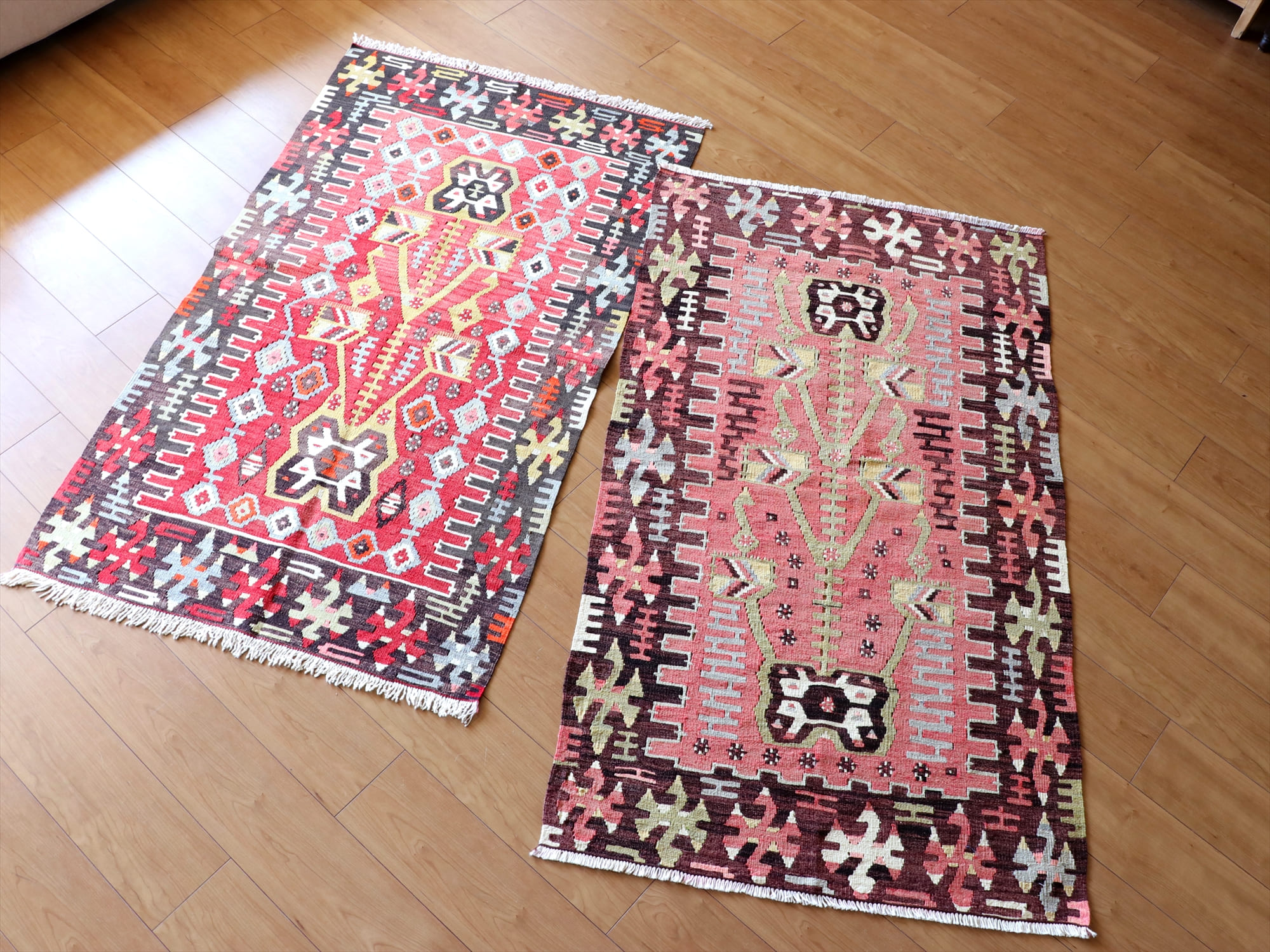 目立つダメージはなく、とてもきれいな状態。トルコキリムの特徴で、モチーフの色の切り替え部分にはスリット(縦の隙間)があいています。