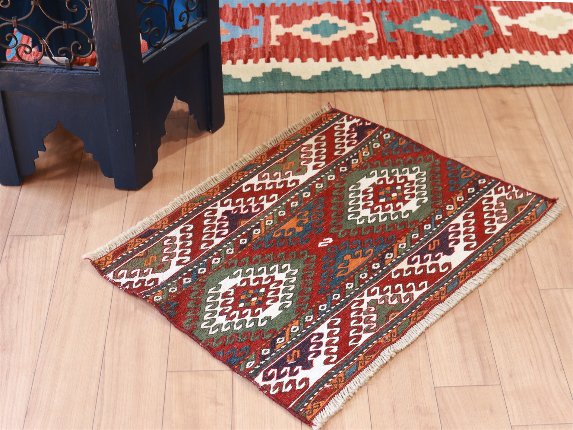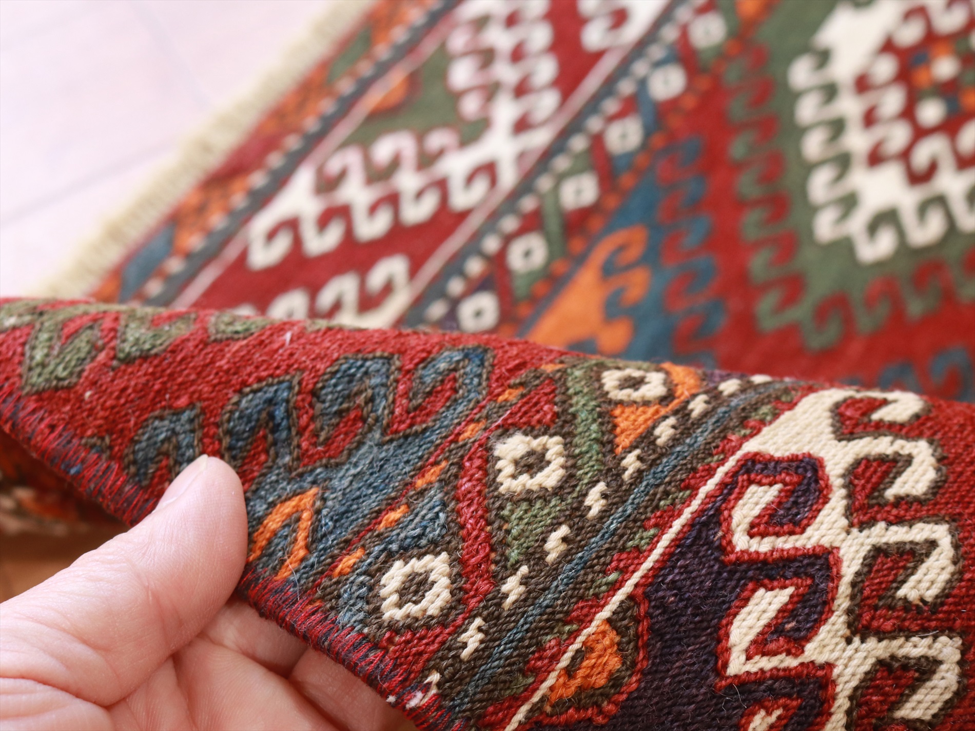 ベシック(マフラシュ)のサイド・ミニキリム37×50cm スマックキリム フラグメント