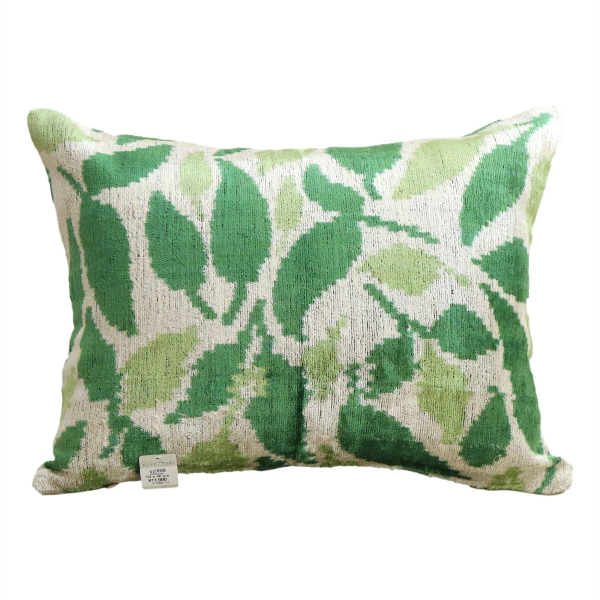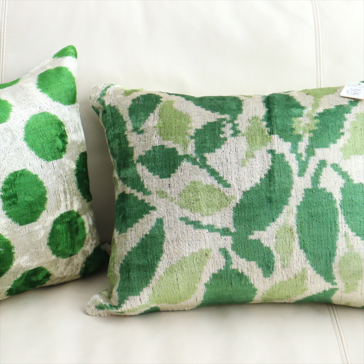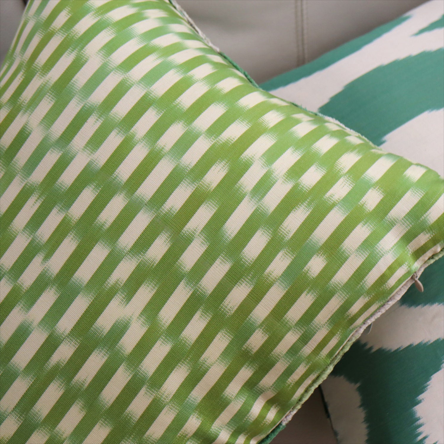 ウズベキスタンで「アトラス」と呼ばれる、中央アジアの女性たちの衣装用に織られた、手機織りの絣布(かすり・イカット)を使ったクッションカバー。