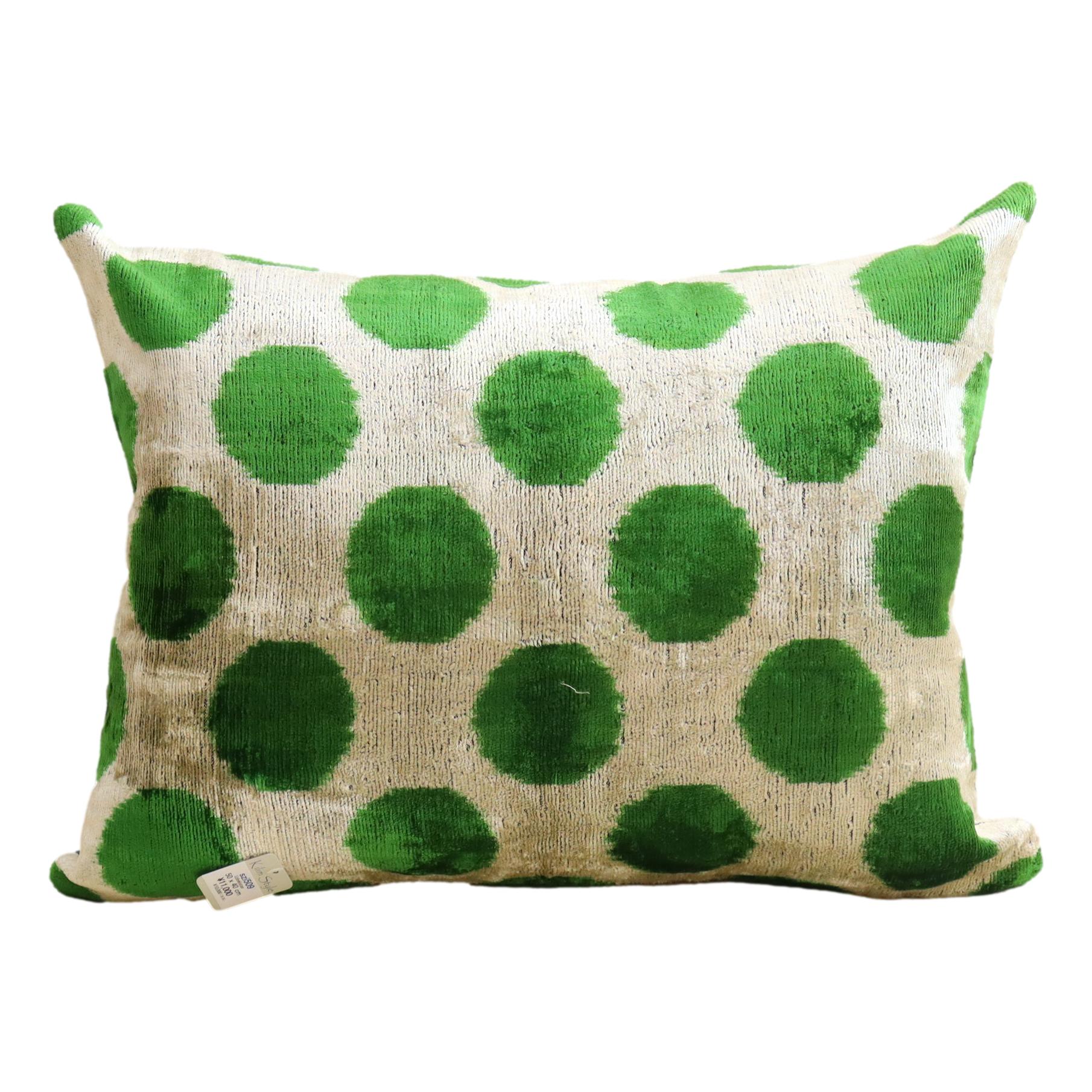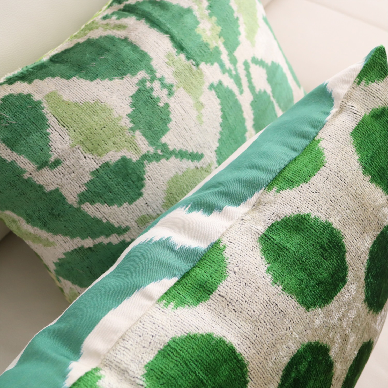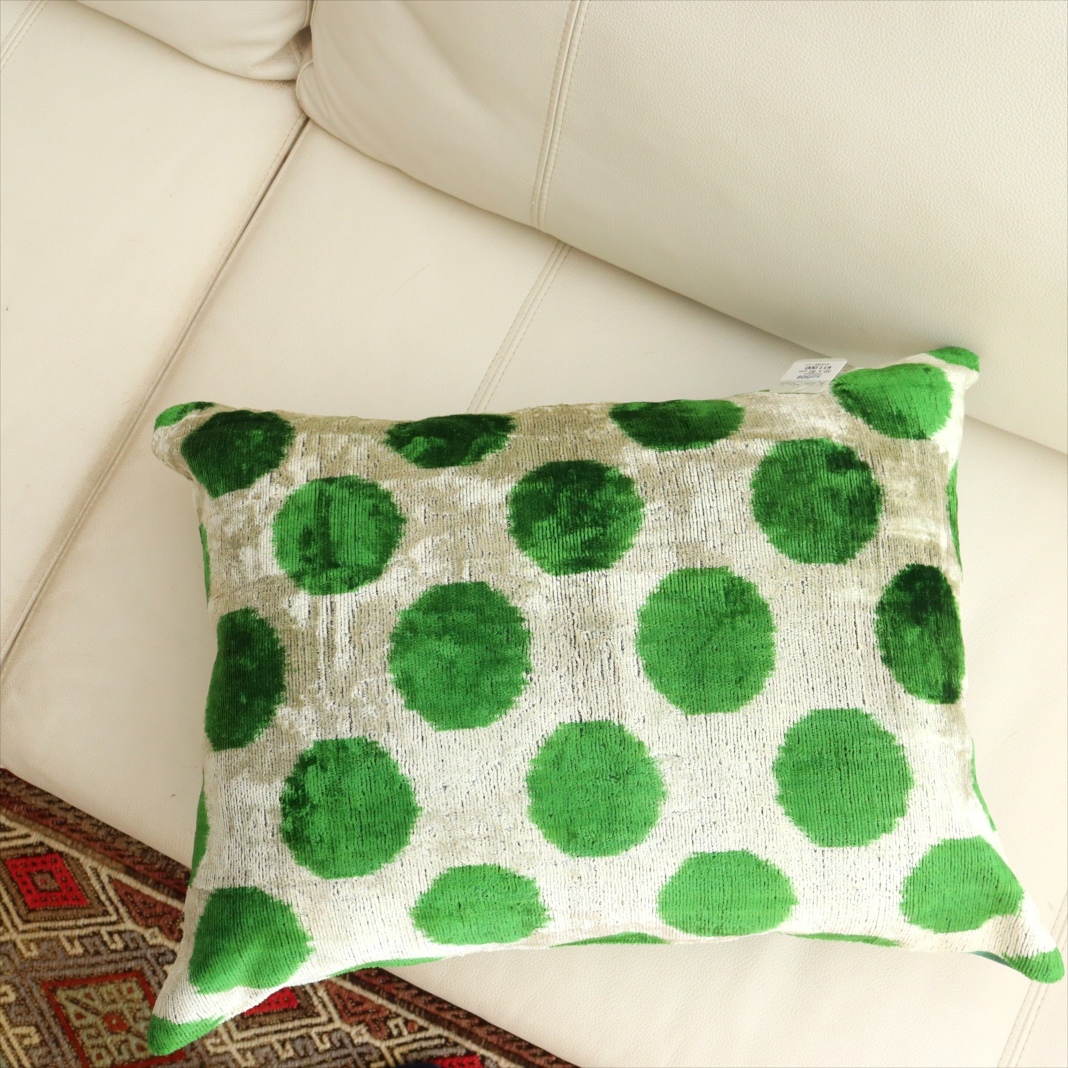 ウズベキスタンで「アトラス」と呼ばれる、中央アジアの女性たちの衣装用に織られた、手機織りの絣布(かすり・イカット)を使ったクッションカバー。