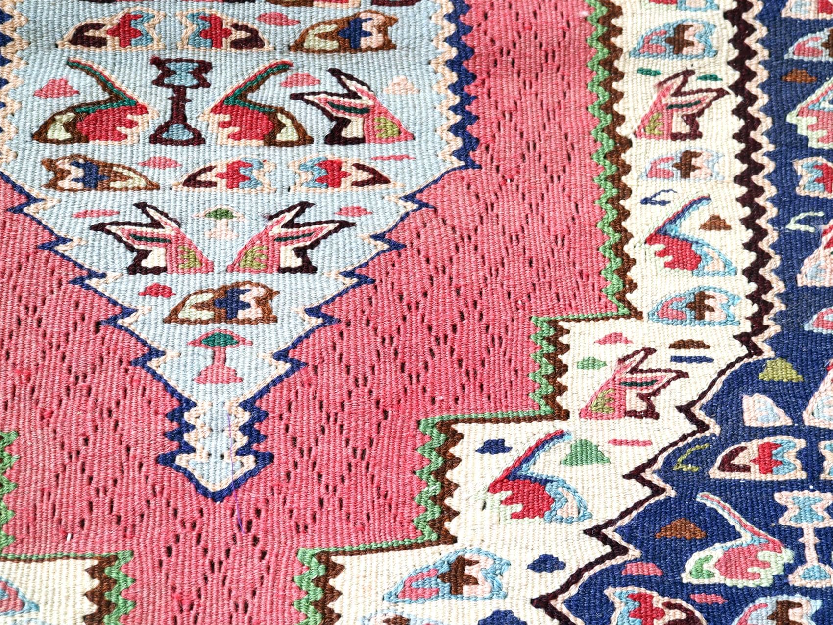 目がぎゅっと詰まって、しっかりとした厚みのあるキリム。(7mm前後の厚み)輸出向けに織られたキリムが数年経って出てきたもので、きれいな状態です。